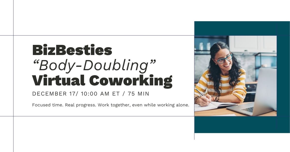 Join our Business Besties Virtual Coworking Sessions—a monthly space where we work independently, but not alone.
